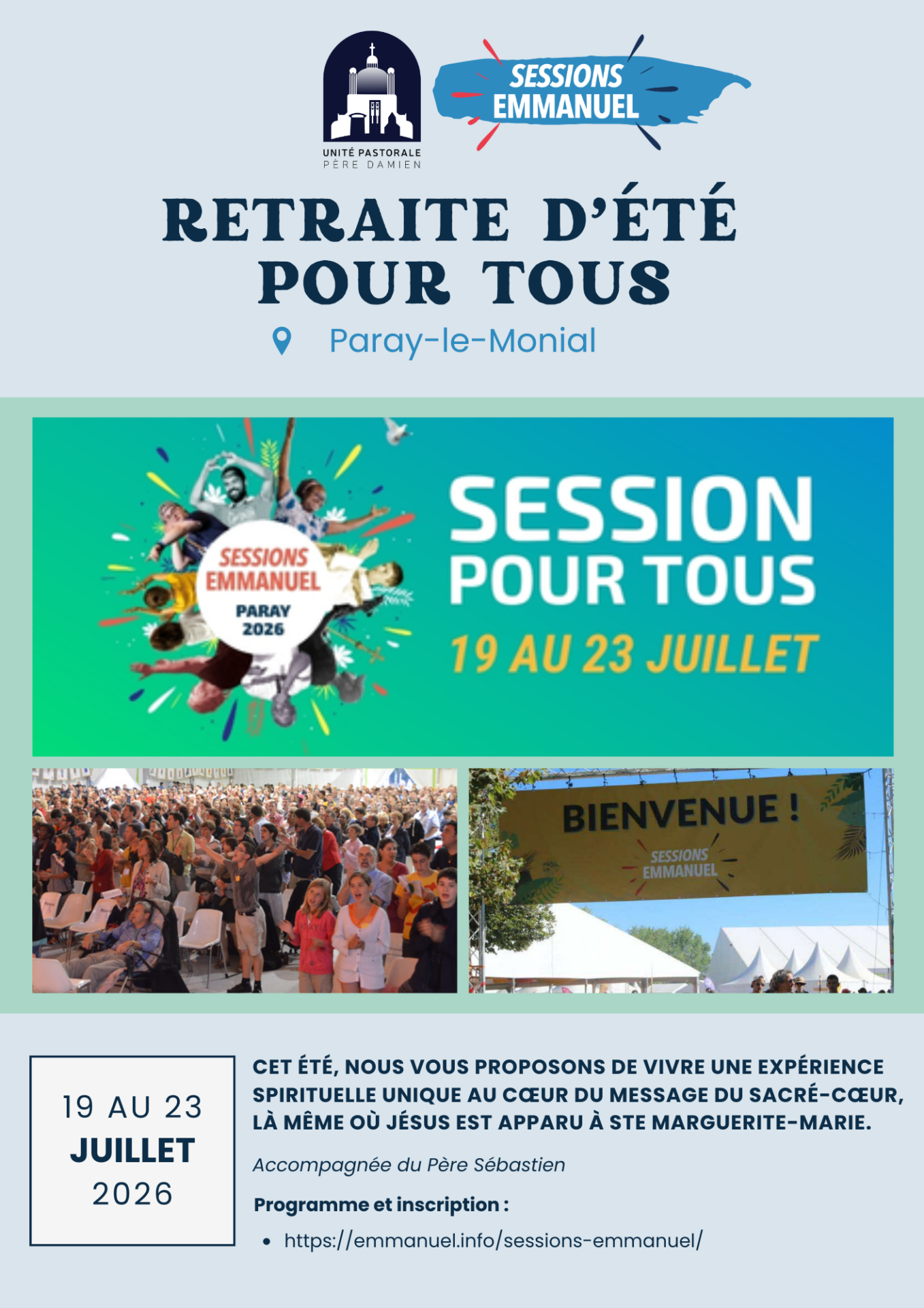 Cet été, nous vous proposons de nous rendre ensemble à une session de Paray-le-Monial, au cœur de la ville du Sacré-Cœur, là même où Jésus est apparu à ste Marguerite-Marie.